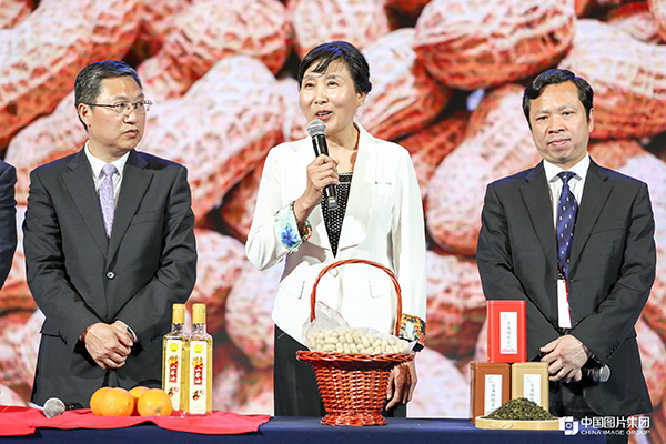 活动现场,河南省驻马店市政协副主席、正阳县委书记刘艳丽推介正阳花生